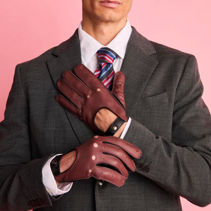 Inspirados en la elegancia atemporal del automovilismo clásico, estos guantes de conducir hechos a mano en piel premium son el punto de encuentro perfecto entre tradición, estilo y precisión al volante. Cada par es confeccionado con piel de tacto extremadamente suave, seleccionada por su flexibilidad y resistencia, ofreciendo una sensación de segunda piel que se adapta a tus manos desde el primer uso.