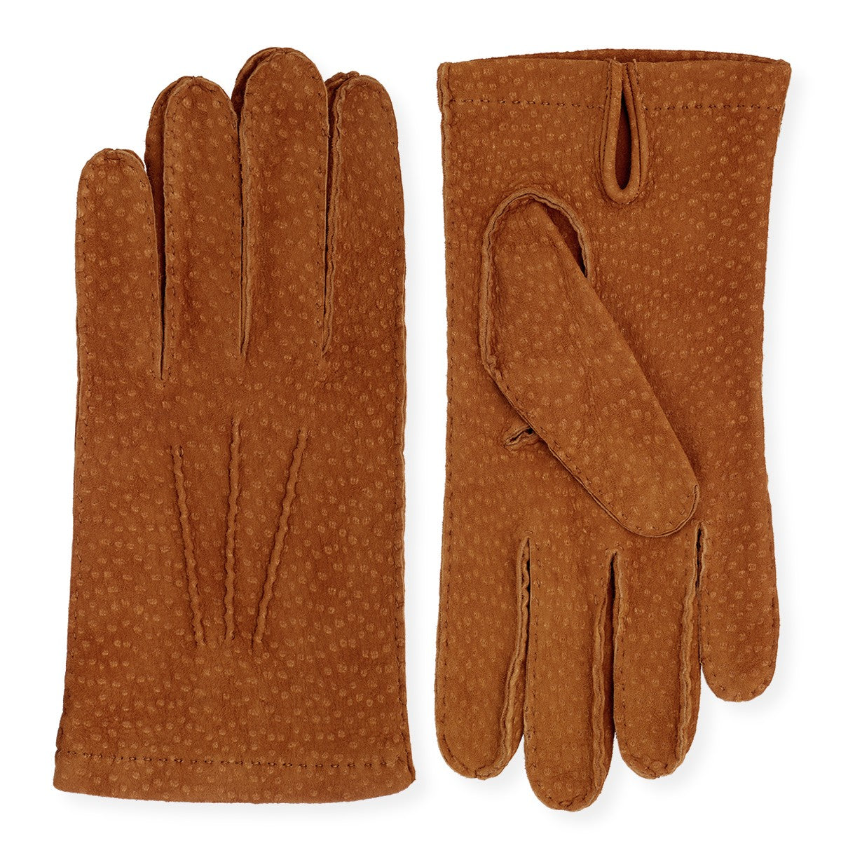 La confección es completamente artesanal: cada guante se corta y se cose a mano en Italia, con atención al detalle en cada costura, pespunte y acabado. El diseño clásico se combina con una ergonomía que respeta la forma natural de la mano, logrando un equilibrio perfecto entre elegancia y comodidad.