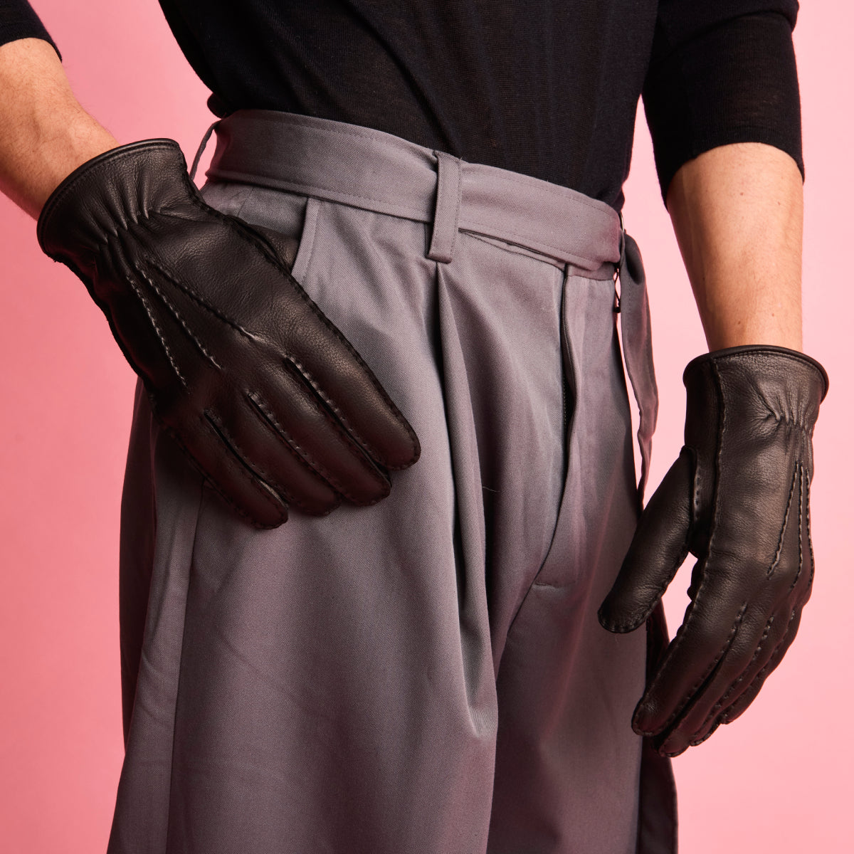 Guantes para hombre de ciervo forrados en lana 100% cashmere, cosidos a mano por el exterior. Dos materiales premium aportan la máxima sensación de lujo, unidos a un ajuste en la muñeca que aporta una mayor protección contra el frío.