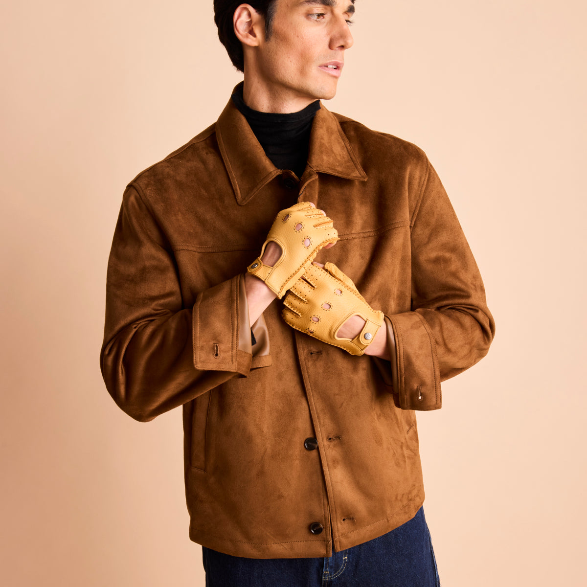 Durante nuestra búsqueda de los mejores artesanos del guante, encontramos en Italia a verdaderos maestros especializados en la confección de guantes de piel de ciervo. Esta piel, cuidadosamente seleccionada en su origen en el Norte de América, destaca por ser excepcionalmente suave, flexible y resistente. Su curtición se realiza en Italia mediante un proceso que combina técnicas tradicionales con métodos modernos, lo que asegura la durabilidad y las cualidades únicas del material.