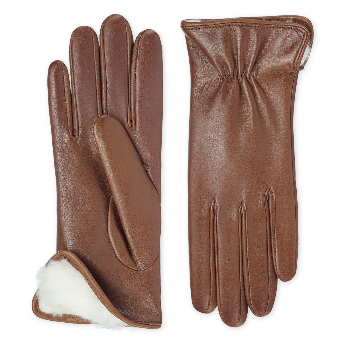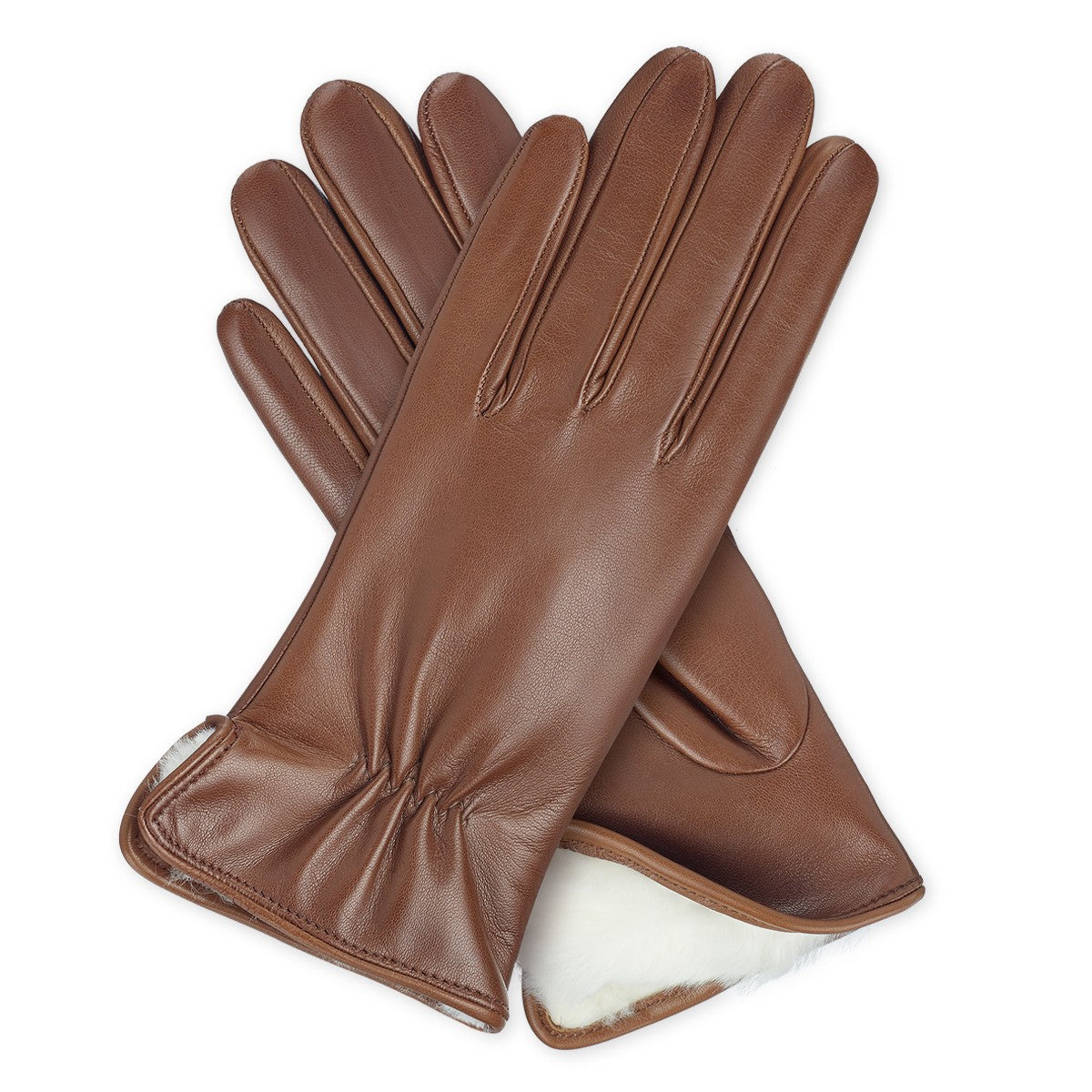 Guantes de piel para mujer elaborados en piel de napa suave con interior forrado completamente en piel de conejo natural, lo que garantiza una calidez excepcional incluso en los días más fríos.