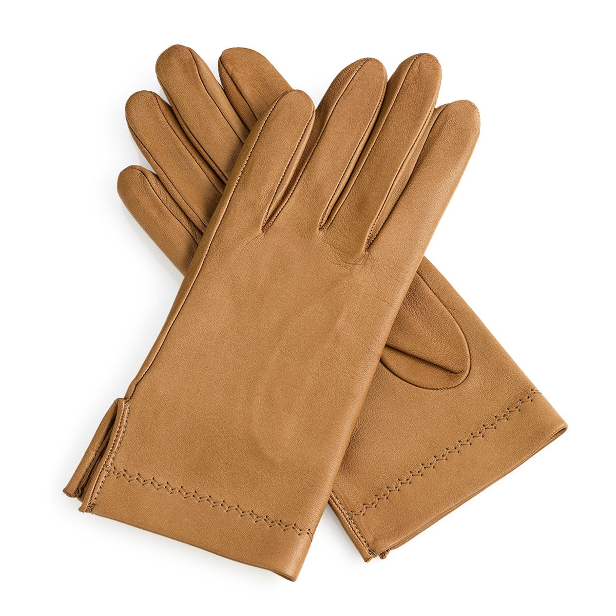 Guantes de piel para mujer con delicado detalle de pespunte, cómodos y elegantes, ideales para complementar tu estilo con confort y sofisticación.