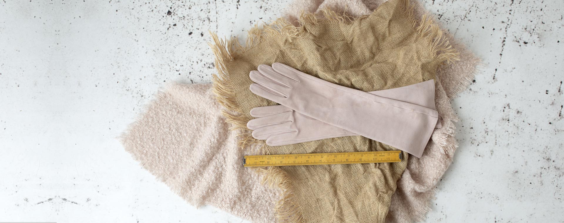 Amalia de Luna offers gloves in various lengths, measured in French inches. From the short glove, at wrist length, to the 16" length, which reaches almost to the shoulder.