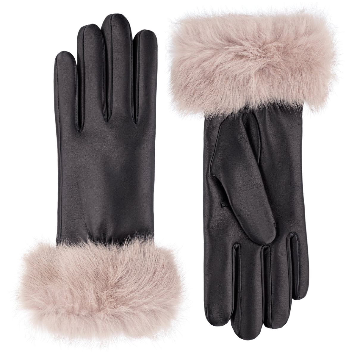 Handcrafted gloves in black leather, selected for its softness and pleasant feel. The natural mink-coloured fur cuff adds warmth and a finish that perfectly complements winter clothing.