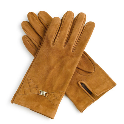 Estos guantes están elaborados en piel de ante, un material aterciopelado que destaca por su suavidad y elegancia. Su acabado delicado y sofisticado los convierte en un accesorio versátil para cualquier ocasión.