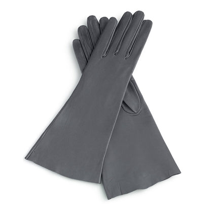 Con una longitud de 4 pulgadas, unos centímetros por encima de la muñeca, estos guantes estilizan la mano y aportan un aire sofisticado a cualquier conjunto. La parte superior está cortada sin dobladillo, ofreciendo un acabado limpio y moderno que realza su diseño.