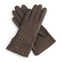 Clásico guante de piel de mujer con adorno de tachuelas doradas, acabado en liso en tonalidad negro o marrón.