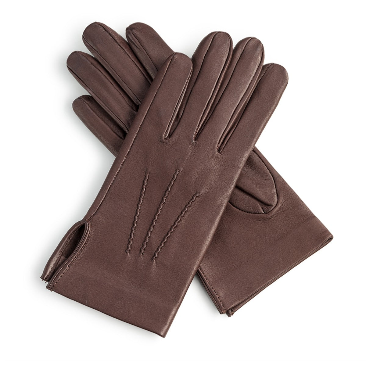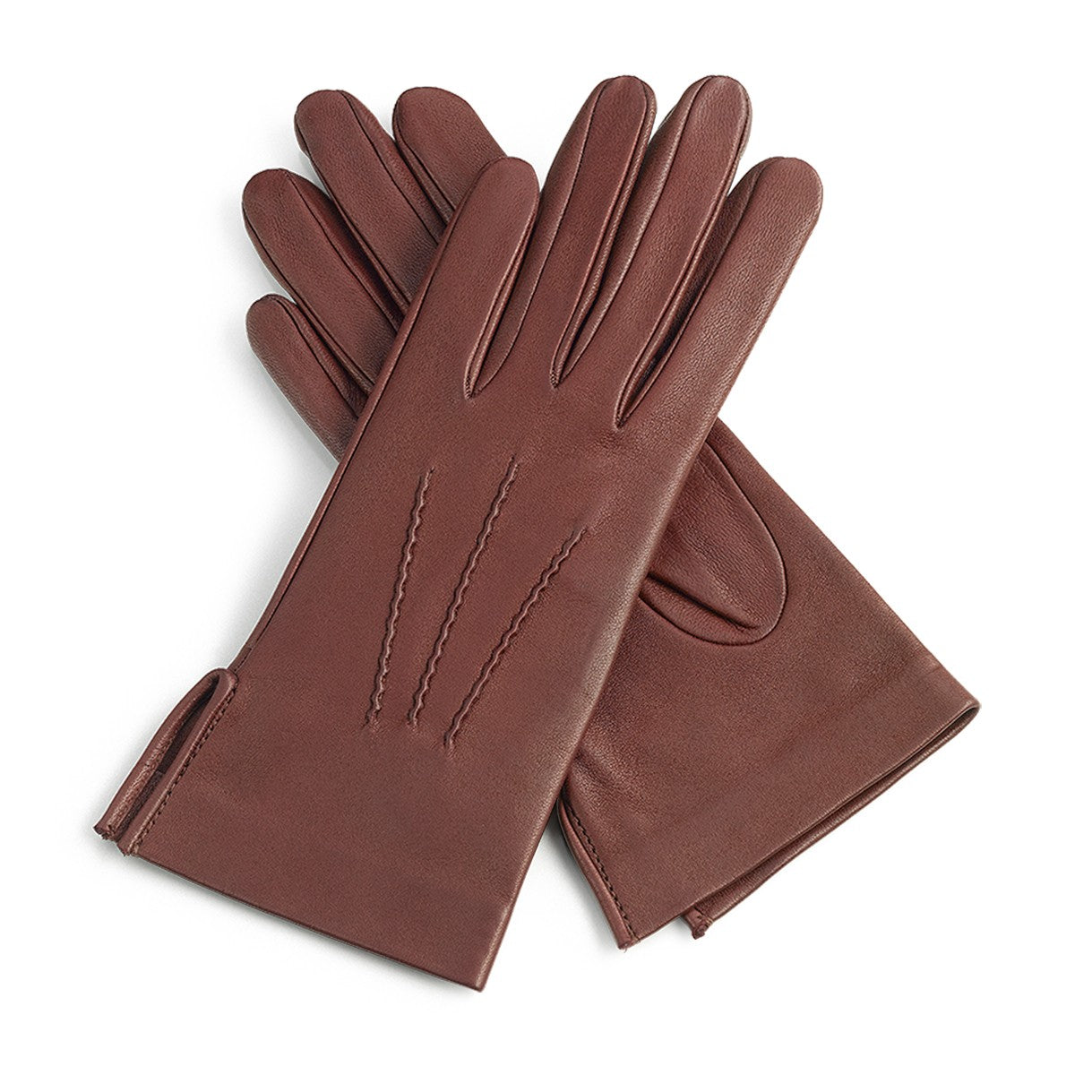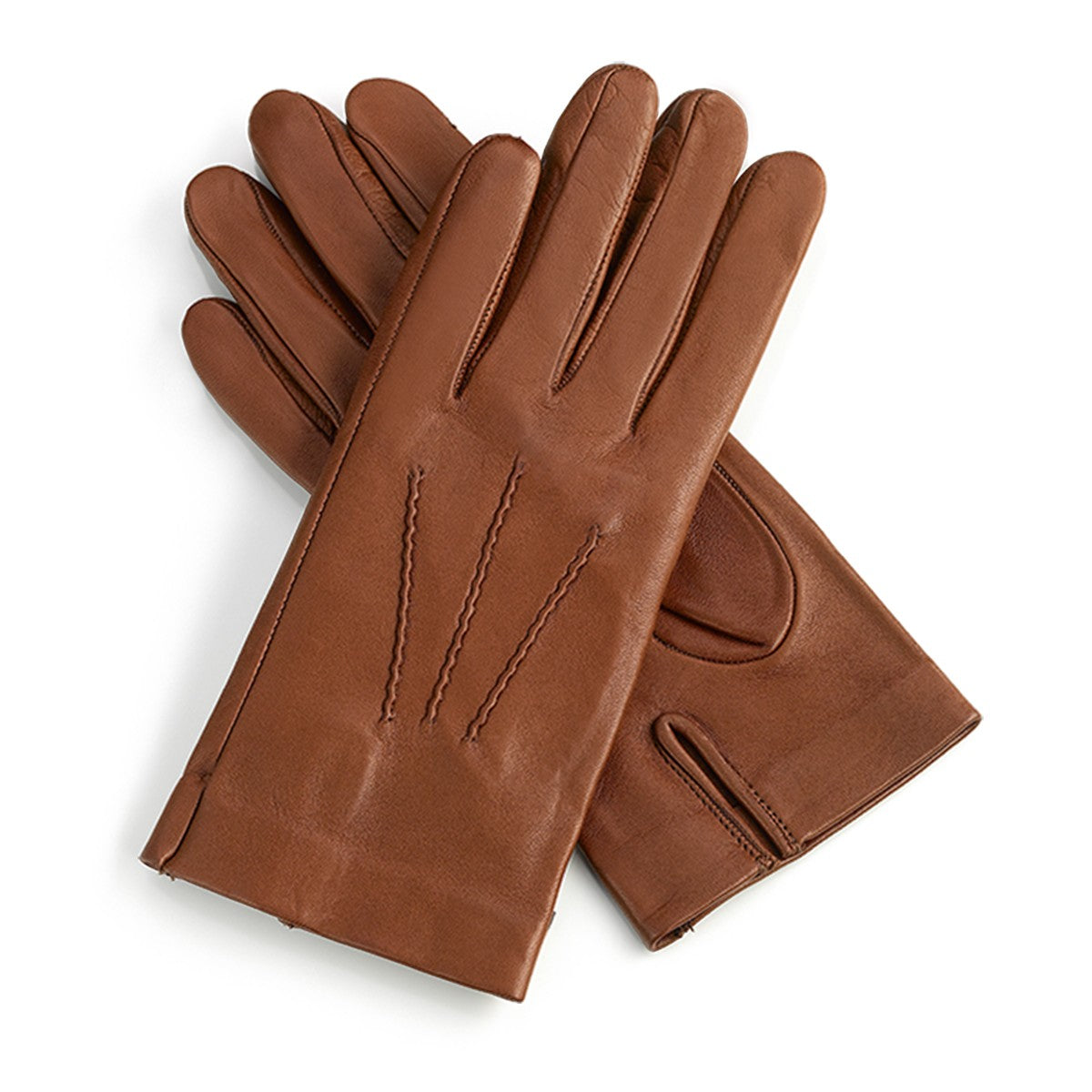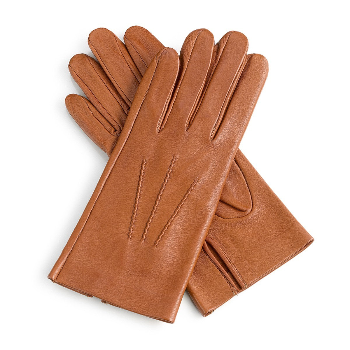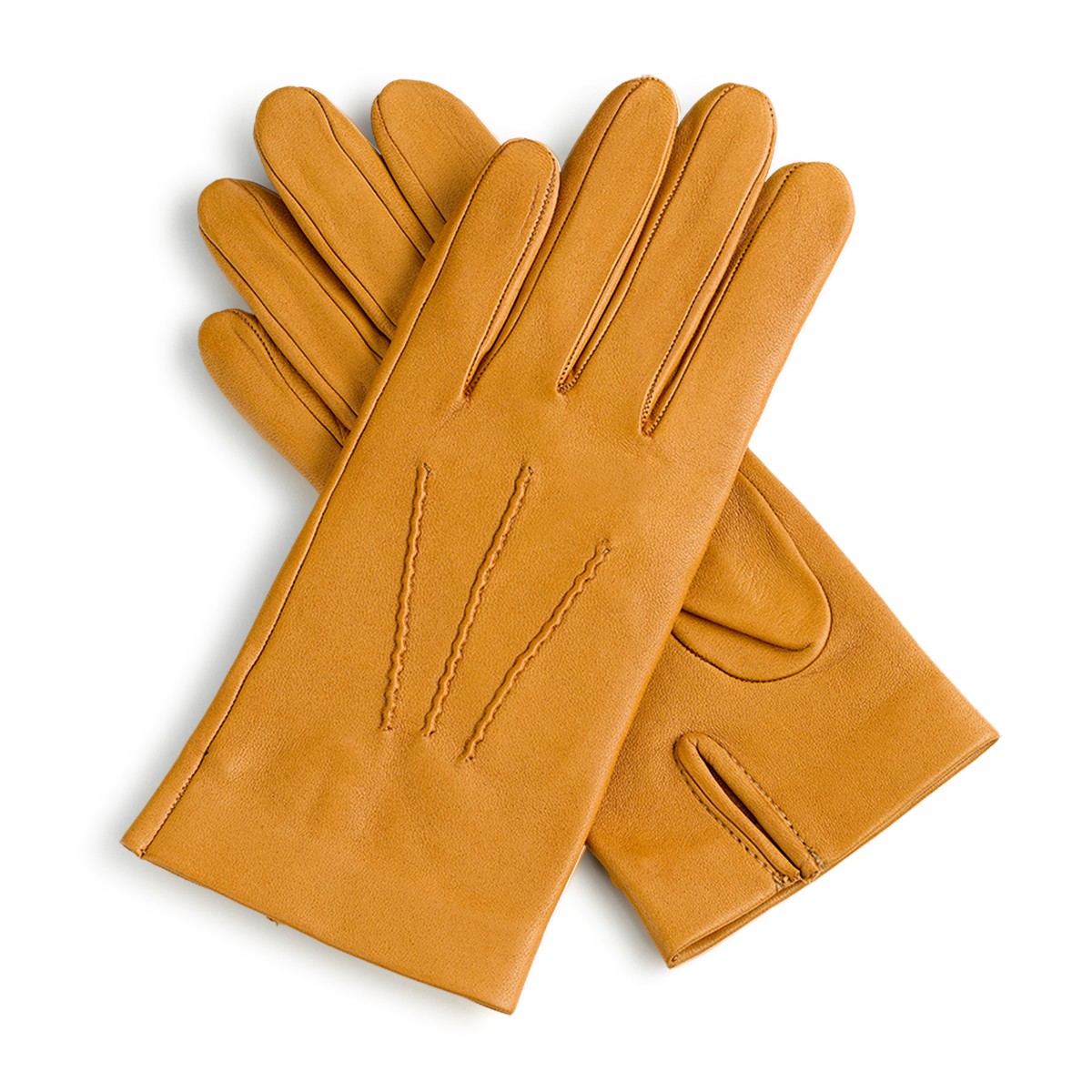 Guante de piel con detalle de tres líneas decorativas en la zona central y largo estándar hasta la muñeca. Un diseño sin forro que ofrece un tacto natural y ligero, ideal para quienes buscan comodidad, versatilidad y estilo en el día a día.