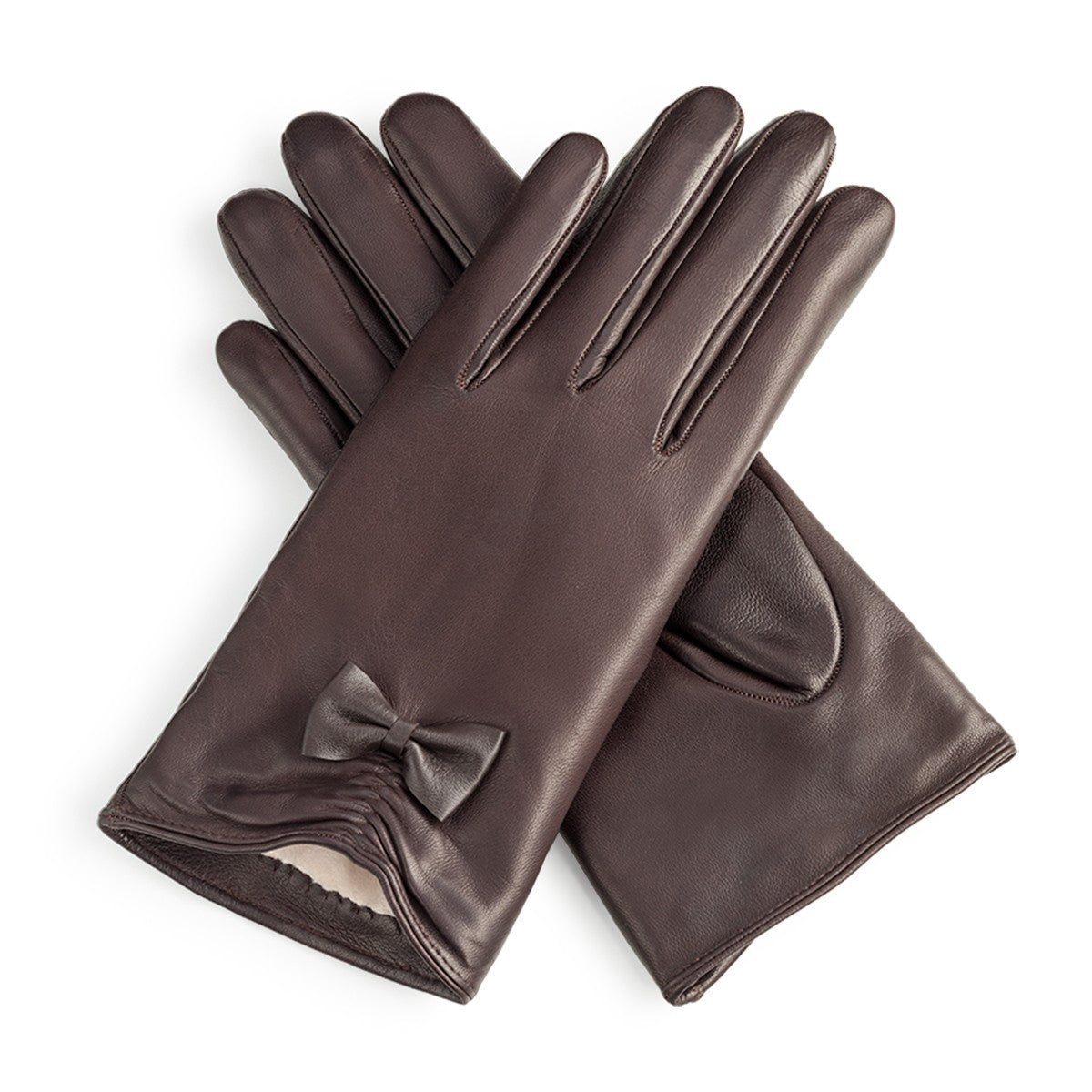 Guantes de piel de alta calidad para mujer, forrados en su interior con fino forro polar, un material suave y cálido que protege las manos durante los días más fríos.