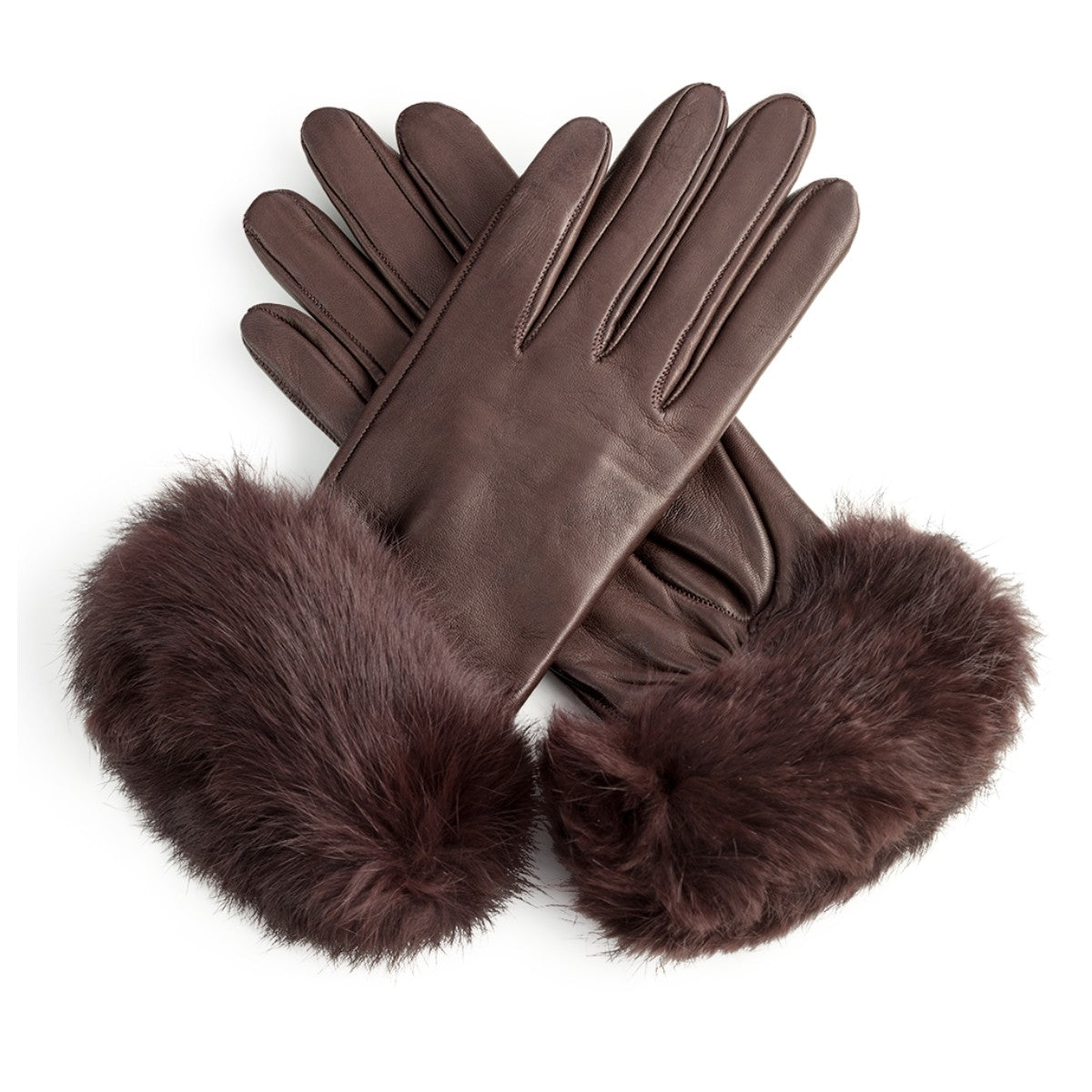 Guantes de mujer en un sofisticado tono marrón, con elegante detalle de puño en pelo natural a juego. Confeccionados en piel suave y con un delicado forro interior, ofrecen calidez y confort mientras mantienen una apariencia refinada y elegante.